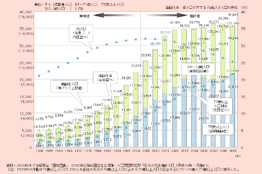 長寿・高齢化の進展と要介護高齢者の増加 出生率の低下と平均寿命の伸長による急速な少子化の進行 ⇒65歳以上の高齢者は、2005年2576万人(総人口の20.2%)、2015年3378万人(26.9%)、2025年3635万人(30.5% )と予測されます。